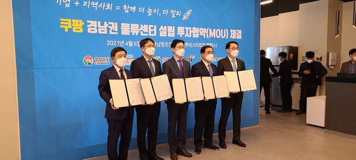 이날 협약에 따라 쿠팡(주)은 김해시 상동면 대감리에 190억원을 투자해 8427평 규모의 최신 스마트물류센터를 구축하고 800명을 신규 고용해 지역경제 활성화와 양질의 일자리 창출을 위해 노력할 것을 약속했다.
