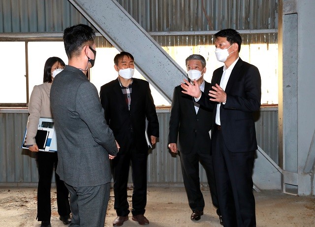| ▲ 조인철 광주광역시 문화경제부시장이 26일 오후 극락강역 폐사일로 문화재생 현장인 극락강역과 (옛)현대시멘트 사일로 시설을 방문해 사업계획을 점검하고 문화콘텐츠 활성화 방안 마련을 주문하고 있다./광주광역시 제공 |