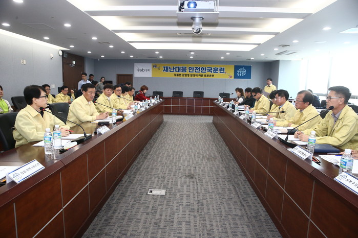 서울 성북구가 최근 '2019 재난대응 안전한국훈련' 기간을 맞아 감염병 발생을 가정한 토론·현장 훈련을 실시했다. 이번 훈련에는 구청과 교육청, 경찰서 등 총 10여개 기관 및 안전 시민단체 150여명이 참석했다. 사진은 토론훈련 모습. (사진제공=성북구청)