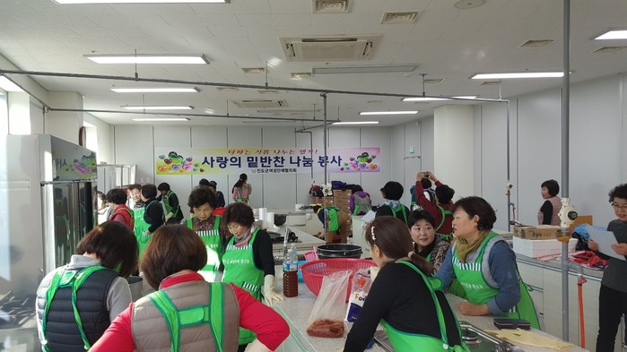 전남 진도군여성단체협의회원들이 최근 어려운 이웃과 함께 사랑을 나누는 ‘사랑의 밑반찬 나눔행사’를 열고 직접 만든 반찬 5종류를 지역내 홀몸노인 100가구에 전달했다. 사진은 밑반찬을 만들고 있는 여성단체협의회원들의 모습.(사진제공=진도군청)