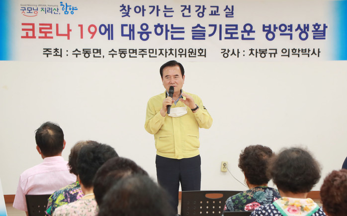 함양군 수동면 주민자치위원회는 지난 20일 오후 1시 수동면사무소에서 마을 어르신 40여명이 참여한 가운데 제일의원 차봉규 원장의 찾아가는 감염병 예방 교육을 실시했다.