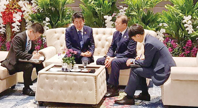 文대통령-아베 ‘11분 단독환담’