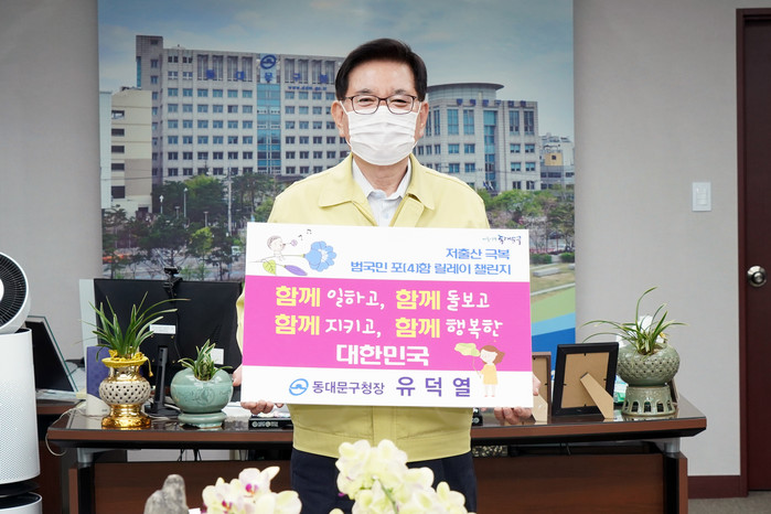 [시민일보 = 이대우 기자] 유덕열 서울 동대문구청장이 저출산으로 인한 국가 위기에 대응하고자 ‘저출산 극복 함께해요! 범국민 포(4)함 릴레이 챌린지’에 동참했다.