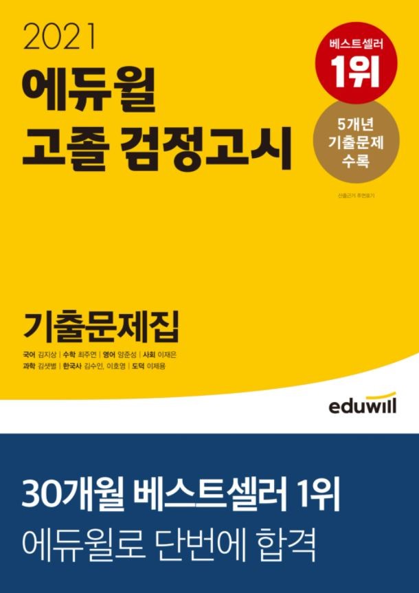 예스24 3월 5주 대입 검정 부문 1위는 ‘2021 에듀윌 고졸 검정고시 기출문제집’이 차지했다. 해당 교재는 2021년부터 출제 범위가 변경되는 검정고시 시험을 대비할 수 있는 교재다.