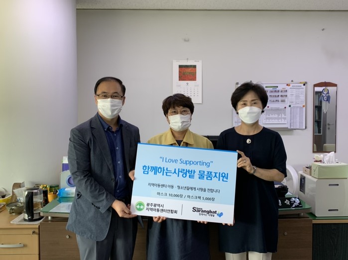 이날 시청에서 열린 전달식에서는 사단법인 ‘함께하는 사랑밭’ 김동자 이사와 ‘굿네이버스’ 박병기 광주전남본부장이 분과별 어린이집연합회장, 광주지역아동센터연합회장단에게 마스크를 전달했다.