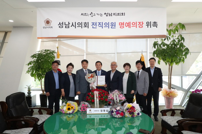 장명섭 명예의장은 1대, 2대 시의원을 역임했으며, 성남중앙지하상가 대표로 활동하는 등 남다른 애향심과 봉사정신으로 지역사회 발전에 이바지해왔다.