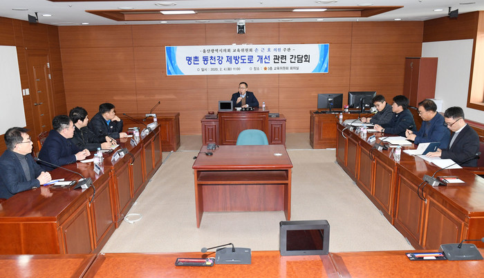 간담회를 주관한 손근호 의원은 동천강 제방도로 개설 사업을 언급하며 “진장ㆍ명촌지구 토지구획정리사업이 1998년에 시작되었으나 조합의 파산으로 현재는 사업이 중단된 상태”라며 “향후 사업 재개가 불투명해지면서 그 피해는 고스란히 지역주민들이 받고 있어 이를 해결하기 위해 당초 울산시에서 시공해야하는 구간이라도 우선 공사를 추진하고자 이 자리를 마련했다”며 간담회를 시작했다.