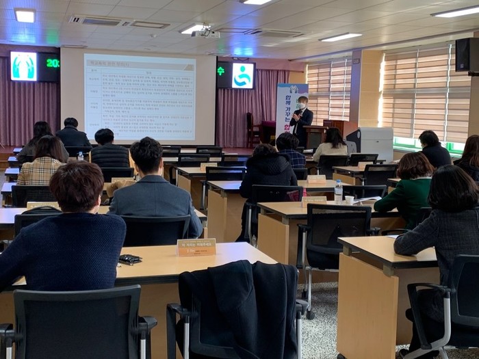 합천교육지원청(교육장 김경미)은 지역의 학교폭력예방 책임교사를 대상으로 2. 18.(수) 역량강화 연수를 실시하였다. 코로나19로 신종 사이버 학교폭력과 같이 온라인 중심으로 증가하고 있는 특성을 이해하고, 3월 개학에 맞춰 새롭게 업무를 맡게 된 책임교사에게 정확한 학교폭력 업무 이해와 처리를 돕는데 목적을 두었다.