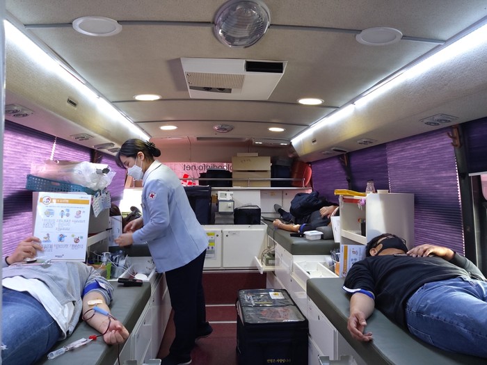 경기 양주시 회천3동 행정복지센터와 회천3동 발전협의회는 20일 회천3동 어울림마당에서 혈액 수급난 해소를 위한 사랑의 헌혈봉사를 실시했다. 이날 헌혈에는 회천3동 사회단체 회원과 학생 등 지역주민 60여명이 참여했다. 사진은 참여자들이 헌혈을 하고 있는 모습.(사진제공=양주시청)