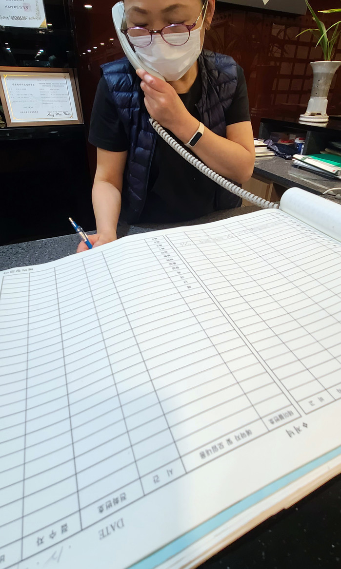 22일 서울 종로구 한 음식점에서 관계자가 연말 모임과 관련한 예약 취소 전화 통화를 하고 있다. 식당 관계자는 평년 연말에는 손님이 몰려 예약 장부에 종이를 덧붙여가며 예약을 받았지만, 올해는 예약한 손님마저 취소 문의를 한다고 전했다.