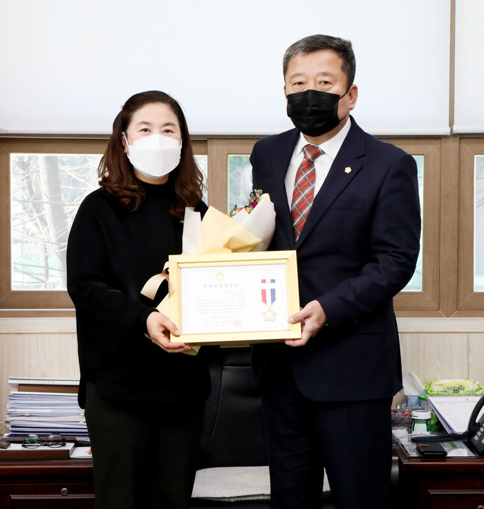 김 위원장은 그동안 지역의 사회적 약자나 소외계층을 위한 정책지원을 비롯해 현장에서 소통과 공감으로 군민이 중심이 되는 의정활동을 펼쳐왔다. 또한 남다른 사명감과 봉사정신으로 코로나19 방역 및 집중호우 피해복구 등 항상 적극적인 의정활동을 펼친 것이 높이 평가돼 수상하게 됐다.