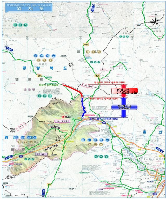 한편 울산시는 운문터널 ~ 상북면 덕현리(연장 2.28㎞) 구간의 개량사업도 ‘제5차 국가지원지방도 5개년 계획’에 반영, 추진하고자 국토교통부와 긴밀하게 협의하고 있다.