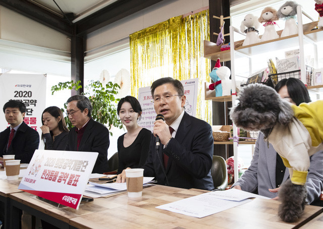 자유한국당 황교안 대표가 21일 오후 서울 마포구 반려견 동반카페 마포다방에서 ‘2020 희망공약개발단 반려동물 공약’ 발표를 하고 있다.