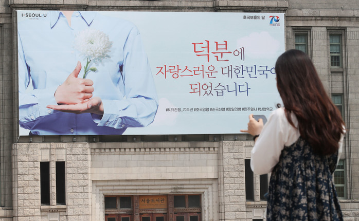 4일 서울 중구 서울도서관 외벽 꿈새김판이 6.25전쟁 70주년 및 호국보훈의 달을 맞아 새롭게 설치돼 있다.