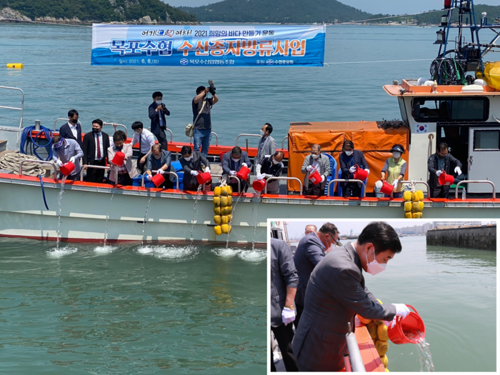 목포수협(조합장 김청룡)은 수산 자원고갈로 어려움에 직면해 있는 어업인들의 고충을 해소하고자 지난8일 목포 북항(5부두) 일대에서‘희망의 바다만들기 운동’으로‘수산종자방류’행사를 개최했다.