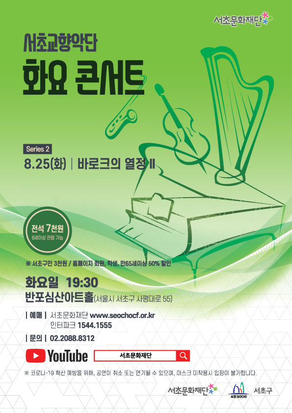 이밖에 화요콘서트에 대한 자세한 사항은 서초문화재단 홈페이지를 통해서 확인이 가능하다.
