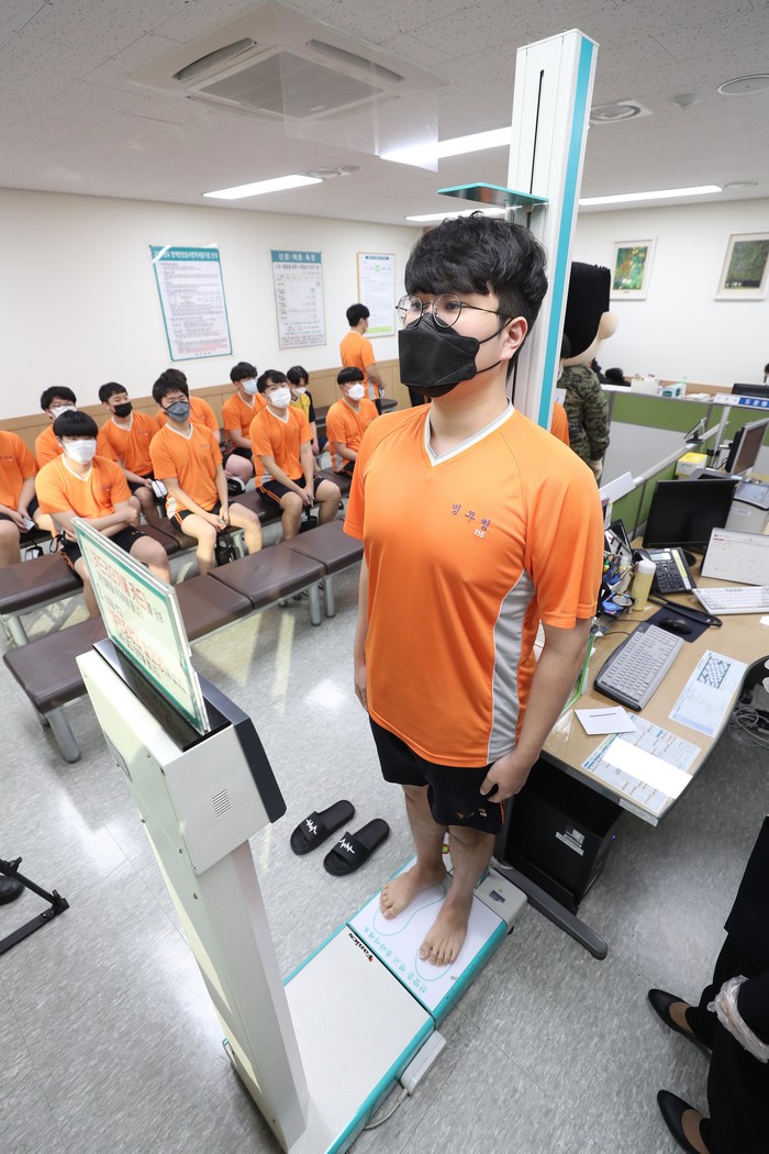 3일 오전 대구시 동구 신서동 대구·경북지방병무청에서 열린 올해 첫 병역판정검사에서 검사 대상자들이 신종코로나 확산 우려로 전원 마스크를 쓰고 있다.