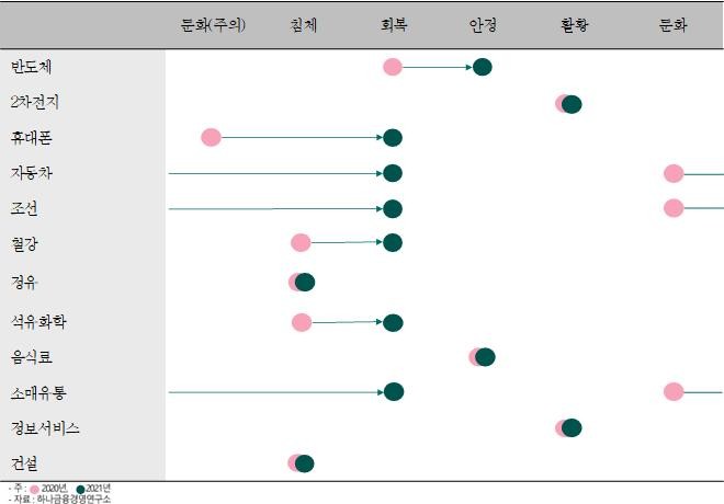 | ▲ 주요 산업 경기 싸이클.(자료제공=하나금융경영연구소) |