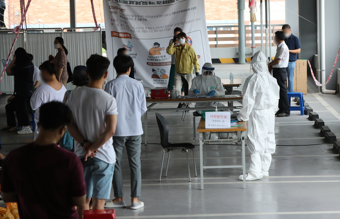 광주·전남에서 잇단 지역내 코로나19 확진자가 나온 29일 오전 광주 북구의 한 공영주차장에 마련된 선별진료소에 시민들의 발길이 이어지고 있다.