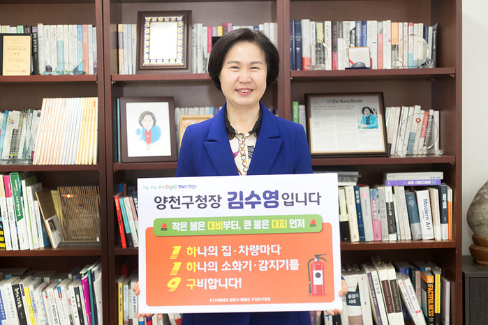 김수영 서울 양천구청장은 지난 3일 화재감지기 등 소방시설설치 독려를 위한 119 챌린지에 참여했다.