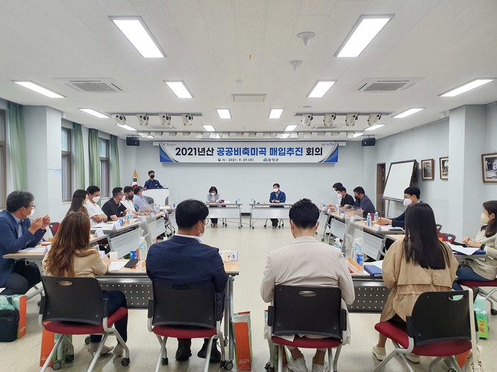함양군은 9월 29일 함양군농업기술센터 회의실에서 군 및 읍면 담당공무원, 농산물품질관리원 함양사무소, 농협중앙회 함양군지부, 지역농협 관계자 등 18명이 참석한 가운데 2021년산 공공비축미곡 매입 관계자 회의를 개최했다.
