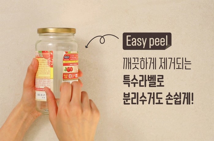 오뚜기에 따르면 이는 병에 붙은 라벨을 제거할 때 접착제나 잔여물이 남지 않고 깔끔하게 제거돼 보다 친환경적이다.