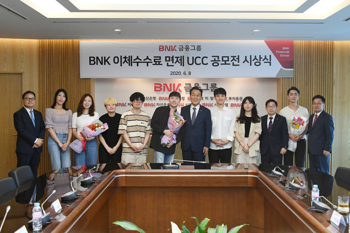 [시민일보 = 여영준 기자] BNK가 8일 오후 본사에서 ‘인터넷·모바일뱅킹 이체수수료 면제’를 주제로 진행한 UCC 공모전의 시상식을 개최했다.