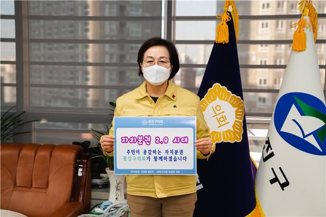 [시민일보 = 여영준 기자] 박삼례 서울 광진구의장이 최근 자치분권 2.0시대 개막을 응원하기 위한 ‘자치분권 기대해’ 챌린지에 동참했다.