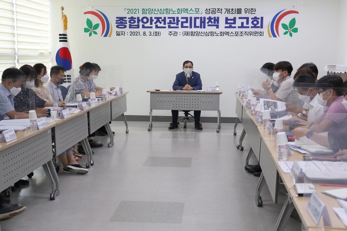 함양산삼항노화엑스포조직위원회(위원장 하병필 도지사권한대행)는 3일 조직위원회 회의실에서 안전한 엑스포 개최를 위한 종합안전관리대책 보고회를 개최했다고 밝혔다.