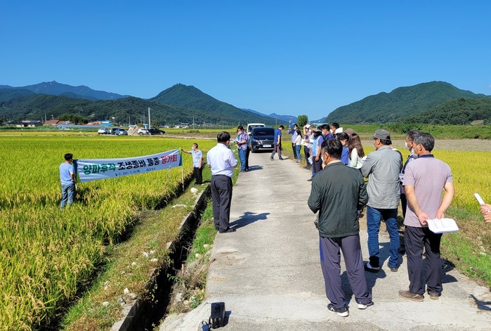 함양군은 9월 30일 지곡면 백일마을 앞들에 있는 조생종벼 비교시범포에서 벼 재배농가, 경남농업기술원 및 함양군 관계공무원 등 30여명이 참석한 가운데 양파후작 조생종 벼 품종 비교평가회를 가졌다.