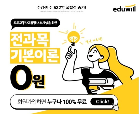 전과목 기본이론 무료 수강 이벤트에 대한 자세한 정보는 에듀윌 도로교통사고감정사 홈페이지를 통해 확인할 수 있다.