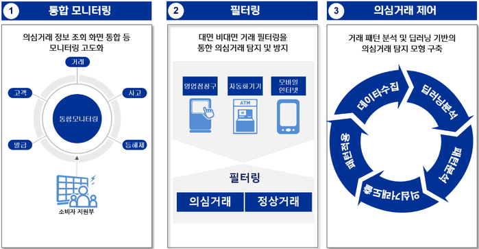 또한 신한은행은 영업점 창구, 모바일·인터넷·ATM 등 대면·비대면 거래 전반에 걸쳐 필터링 정확도를 높여 의심거래와 정상거래에 대한 구분 능력을 높였으며, 딥러닝 분석 과정에 활용되는 거래 유형 및 변수 데이터 분량을 확대하고 의심거래 제어 능력을 강화했다.