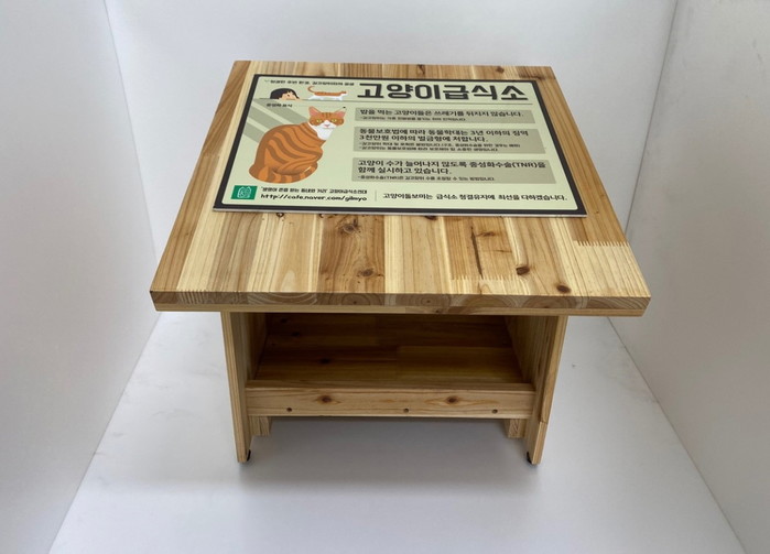 이번에 두 업체가 손을 잡고 보급하는 고양이 급식소는 조립식으로 만들어 유통 및 보관을 쉽게 했으며, 실외에서 사용하는 경우가 많아 기본적인 방수처리는 물론 청소나 급식을 편리하게 할 수 있도록 윗부분을 개방할 수 있게 만들어 편리성까지 갖추었다.