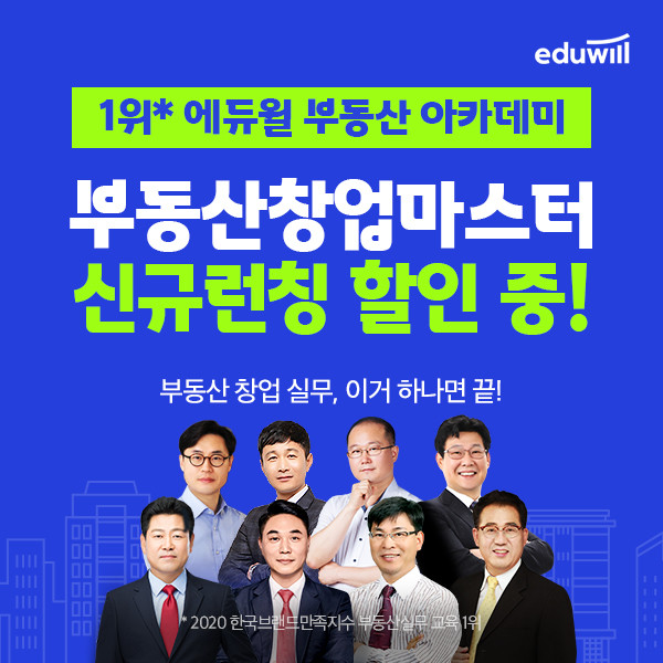 [시민일보 = 여영준 기자] 종합교육기업 에듀윌(대표 박명규)이 공인중개사들의 부동산 실무 교육을 위해 운영하고 있는 에듀윌 부동산 아카데미가 ‘부동산 창업 마스터’ 신규 런칭 이벤트를 진행한다.