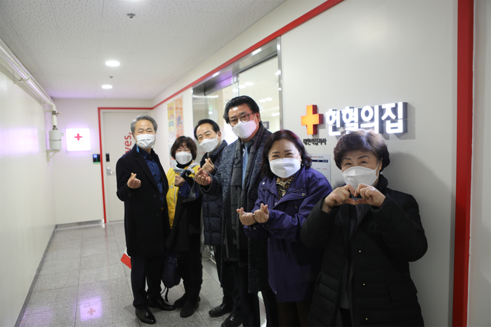 | ▲ 강동구의회 황주영 의장(오른쪽에서 두 번째)을 비롯한 의원들이 명일동에 위치한 헌혈의 집 강동센터를 찾아 헌혈에 동참했다. |
