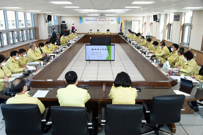 이날 보고회는 그 동안 코로나19 대응 상황을 점검하고 개학 연기에 따른 학생들의 학습지도 대책 등을 모색하기 위해 매월초 열던 교육청 확대간부회의를 코로나19 보고회로 전환해 개최했다.