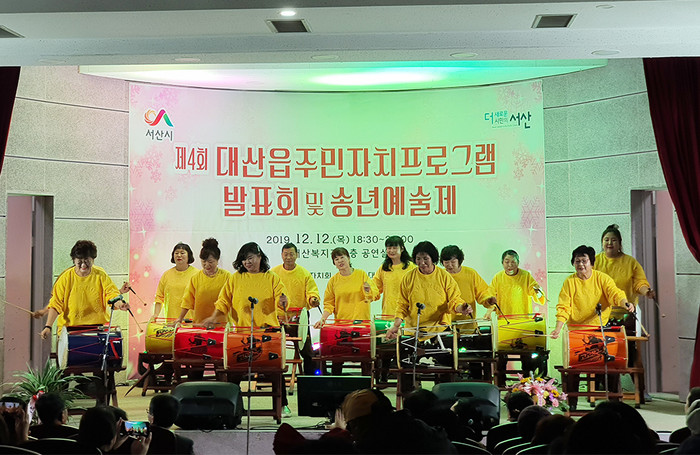 충남 서산시 대산읍 주민자치회는 최근 종합사회복지관 대산분관에서 지역내 주민 및 기관, 단체장 등 약 200명이 참석한 가운데 ‘제4회 대산읍 주민자치프로그램 발표회 및 송년예술제’를 개최했다. 사진은 주민들이 공연을 하는 모습.(사진제공=서산시청)