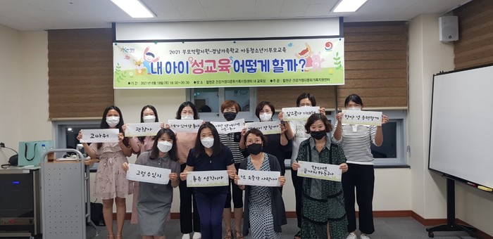 합천군(군수 문준희) 건강가정다문화가족지원센터에서는 지난 19일 관내 군민 중 아동청소년기 자녀를 둔 부모 10명을 대상으로 ‘내 아이 성교육 어떻게 할까?’라는 주제로 프로그램을 진행했다.