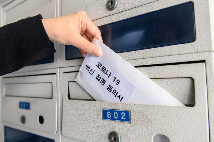 | ▲ 양천구, 코로나 19 백신접종 동의서를 우편함을 통해 전달하고 있다. (사진제공=양천구청) |