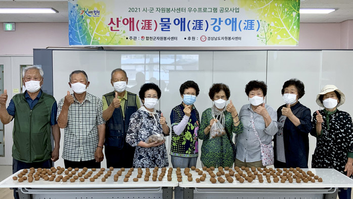 합천군(군수 문준희) 보건소 치매안심센터에서 자원봉사센터 우수프로그램 ⌜산애, 물애, 강애⌟을 연계하여 ‘EM흙공 만들기’ 행사를 진행한다고 밝혔다.