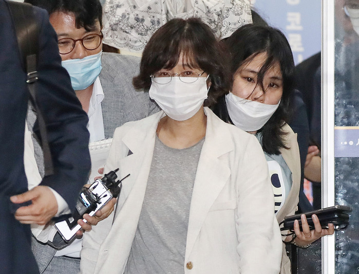 박원순 전 서울시장의 성추행 의혹을 가장 먼저 인지한 것으로 알려진 임순영 서울시 젠더 특보가 21일 새벽 조사를 마친 후 서울 성북경찰서를 나서고 있다.