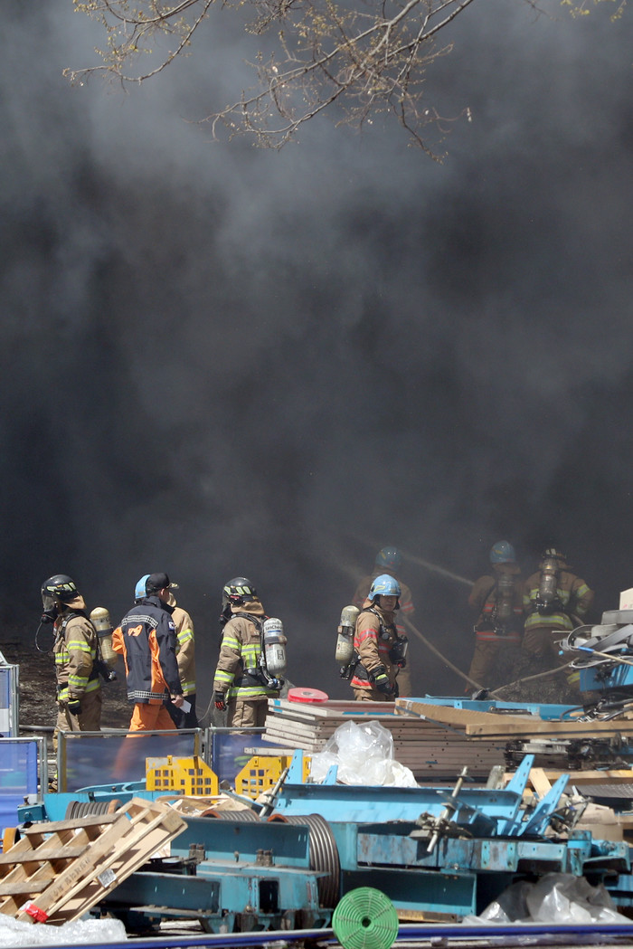 21일 오전 10시35분께 경기 군포시 부곡동 군포복합물류터미널 F동에서 큰불이 났다. 소방당국은 서울 등 인접 지역의 가용 가능한 소방 인력과 장비를 모두 동원하는 최고단계 경보령인 대응 3단계를 발령, 소방대원 66명과 펌프차 등 장비 36대가 진화작업에 투입했다. 이날 불은 물류센터 옆 쓰레기 소각장에서 발생한 뒤 터미널 건물로 옮겨붙은 것으로 조사됐다. 현재까지 파악된 인명피해는 없다./연합뉴스
