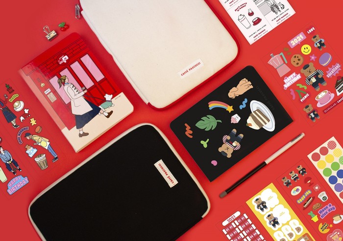 2021 파스쿠찌 플래너(정상가 29,000원)는 디자인 문구 브랜드 ‘루카랩’과 협업한 제품으로, 파스쿠찌를 상징하는 모카포트와 티라미사르도를 활용한 디자인이 특징이다. 플래너는 북 파우치와 플래너, 스티커가 세트로 구성되어 자신만의 다이어리를 꾸밀 수 있는 ‘DIY형 플래너 키트’, 파스쿠찌를 배경으로한 일러스트가 그려진 플래너와 파우치, 스티커가 세트로 구성되어 있는 ‘일러스트형 플래너 키트’ 등 2종이다. 신제품에 포함된 북 파우치는 플래너 보관은 물론 태블릿 PC, 휴대폰 등 다양한 소지품을 수납할 수 있어 활용도가 높다.