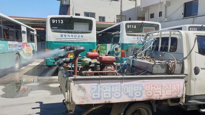 함양시외버스터미널 대합실과 하차장, 안의시외버스터미널 등에 인력을 배치하여 생활 속 거리두기 방역 지도와 함께 방역·소독 및 발열체크를 시행하고 있다.