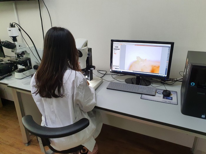 | 광주광역시 농업기술센터, 딸기 꽃눈 발달단계 검사 / 광주광역시 제공 |