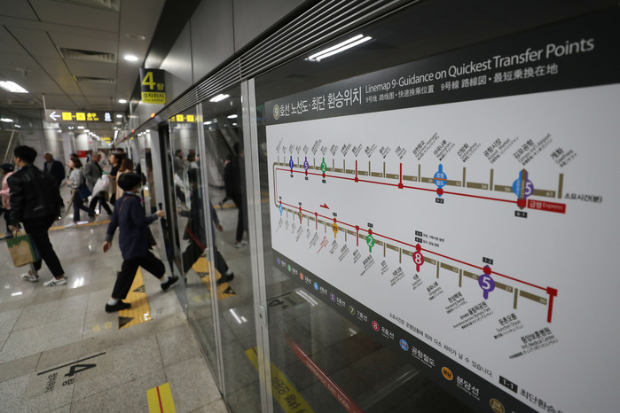 서울 지하철 9호선 2·3단계(언주∼중앙보훈병원, 13개역) 구간을 운영하는 서울교통공사 9호선운영부문 노조가 인력 충원과 호봉제 도입 등을 요구하며 7일부터 사흘간 파업에 돌입했다. 열차 지연 등으로 시민 불편이 우려되는 가운데 서울시는 대체 인력을 투입해 평소와 동일하게 운행하겠다고 전했다. 사진은 이날 오후 서울지하철 9호선 언주역에서 시민들이 열차를 이용하는 모습.