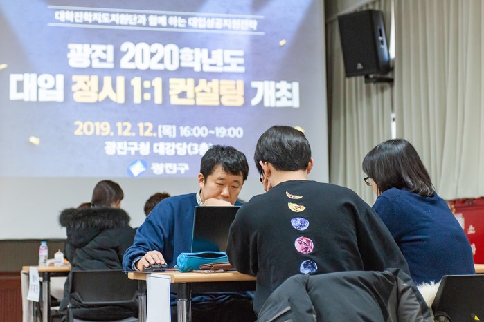 서울 광진구가 지역내 수험생의 대학 진학에 도움을 주고자 12일 구청 대강당에서 '대입 정시 1:1 맞춤 입시 컨설팅'을 개최했다. 사진은 입시 컨설팅에서 상담받고 있는 수험생의 모습.(사진제공=광진구청)