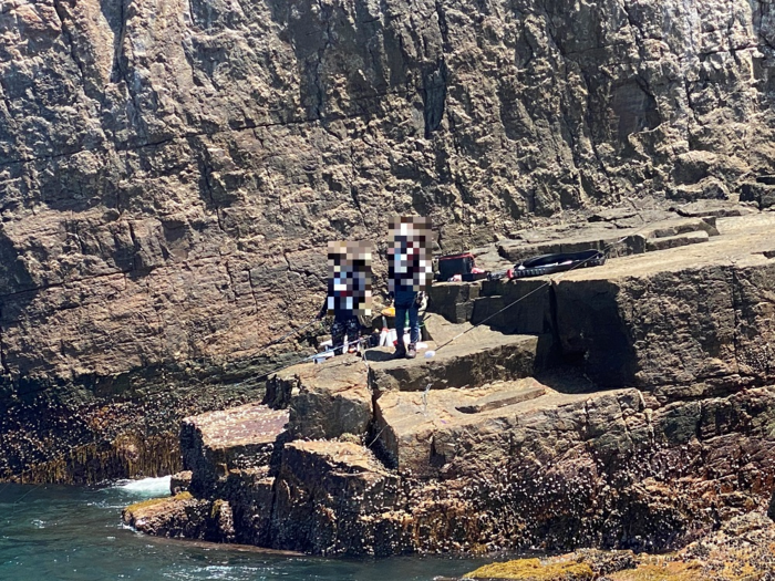 | ▲ 무인도 입도금지 구역에서 낚시행위하고 있는 낚시객(출처=목포해양경찰서) |