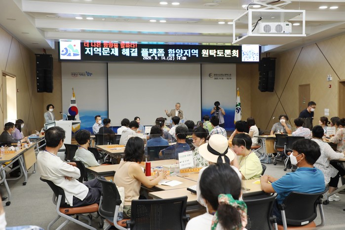 함양군은 14일 군청 대회의실에서 지역공동체 문제를 주민이 스스로 참여하여 의제를 발굴하고 해결방안을 모색하는 지역문제 해결 플랫폼 과정의 일환으로‘원탁토론회’를 개최했다.