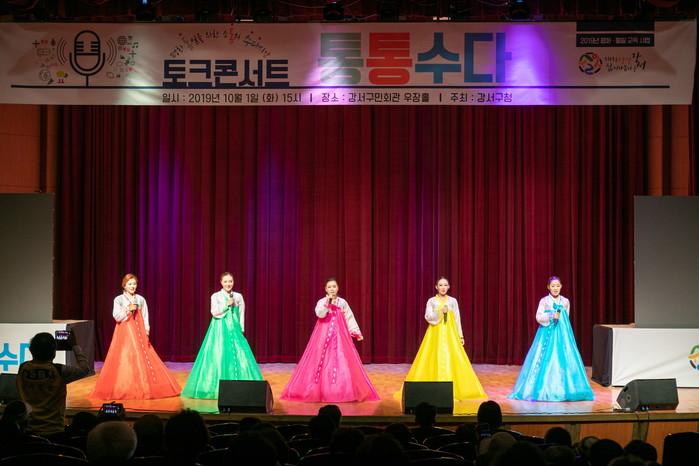 서울 강서구는 최근 강서구민회관에서 청년부터 노인까지 참석한 가운데 ‘한반도 평화시대를 만들기 위한 우리의 노력’ 등을 주제로 토크 콘서트 ‘통통수다’를 개최했다. 사진은 평양꽃바다예술단이 북한 민요 공연을 하고 있는 모습.(사진제공=강서구청)